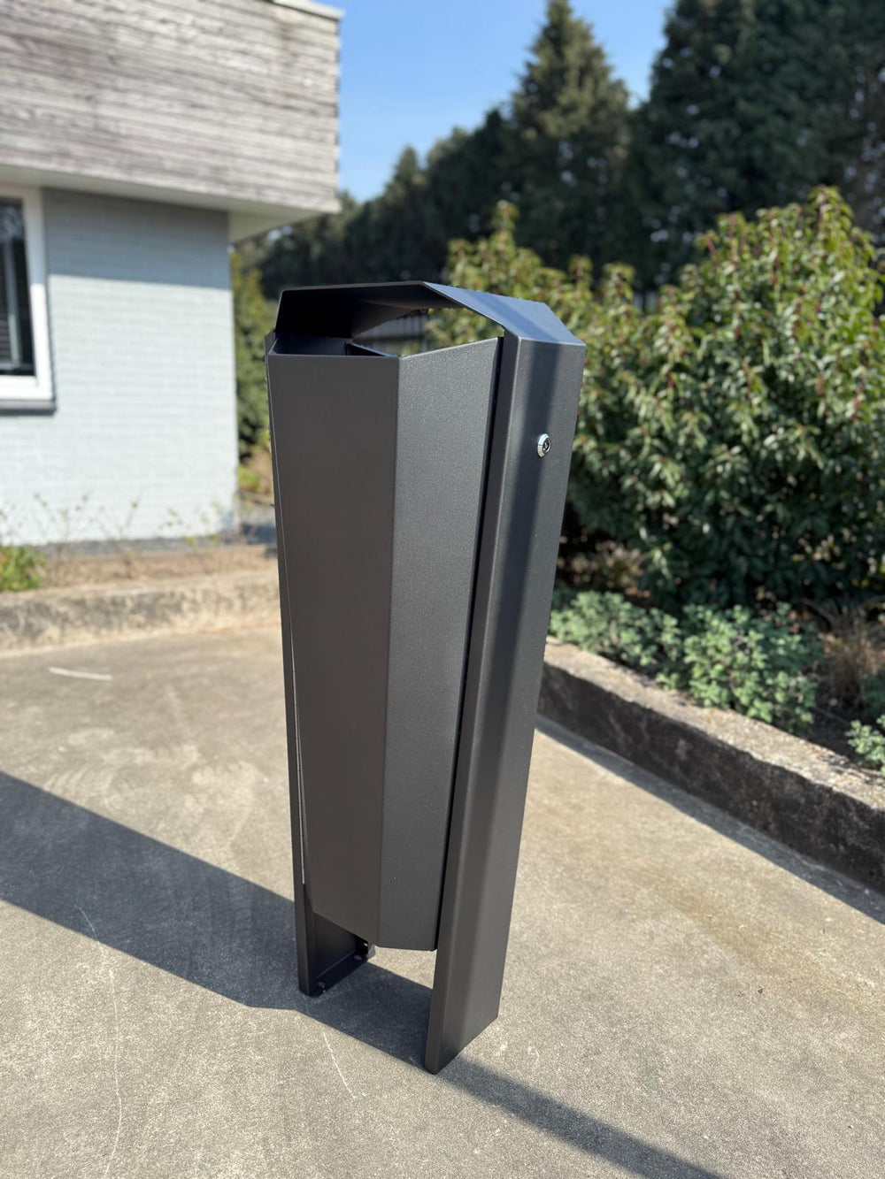 Fraai door zijn onopvallende charme. De latten aan de buitenzijde van de bak en de scharnierende RVS deksel verlenen hem een natuurlijke en stijlvolle uitstraling.