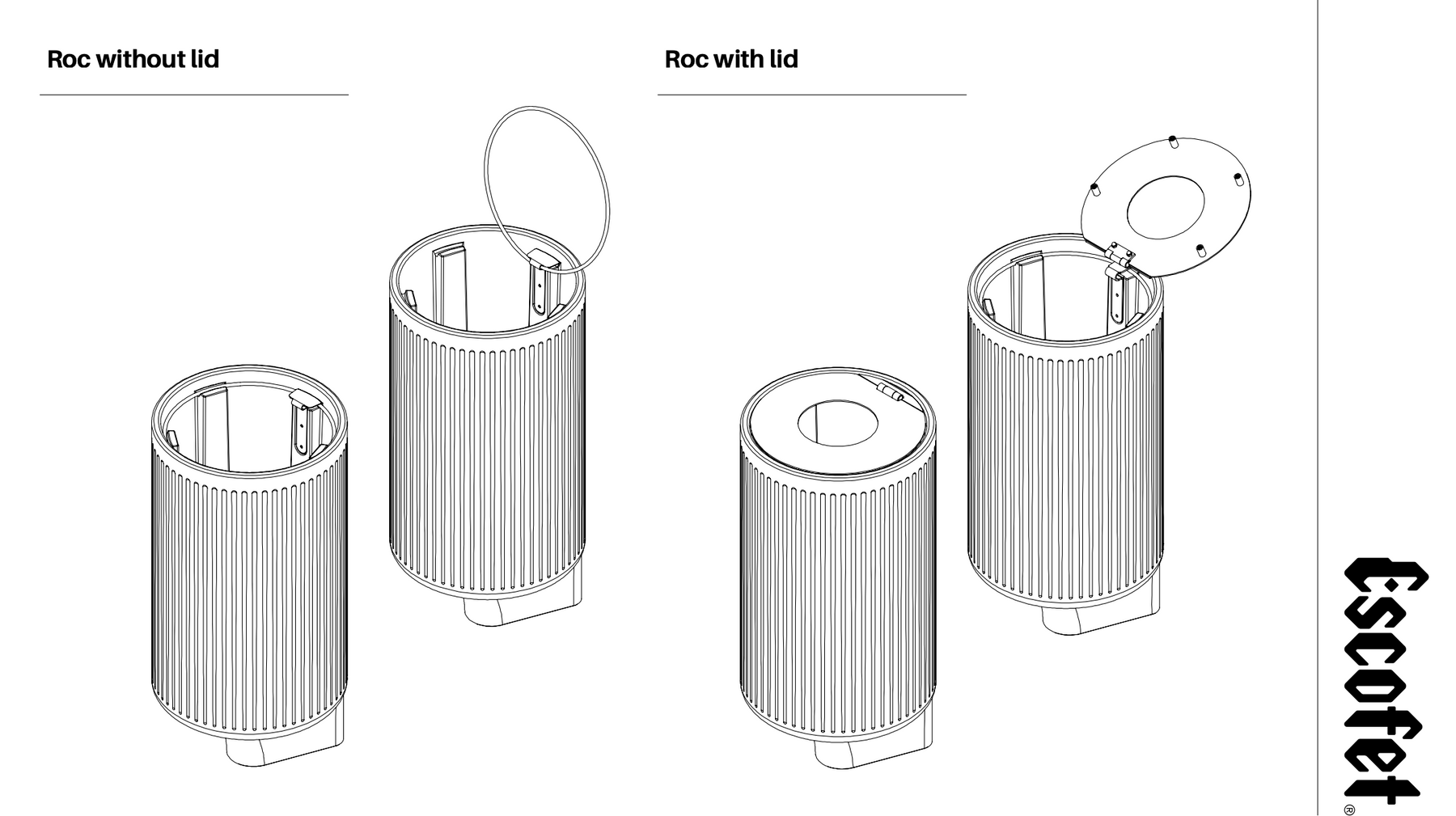 De afvalbak is leverbaar met en zonder deksel. De inworp opening is zonder deksel 40cm. Bij de uitvoering met deksel met slot is de inworp opening 18cm.